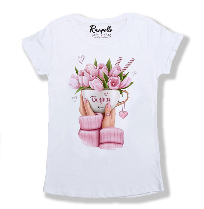 T-shirt Made in Italy, 100% cotone, con scollo tondo e stampa di alta qualità. Vestibilità regular