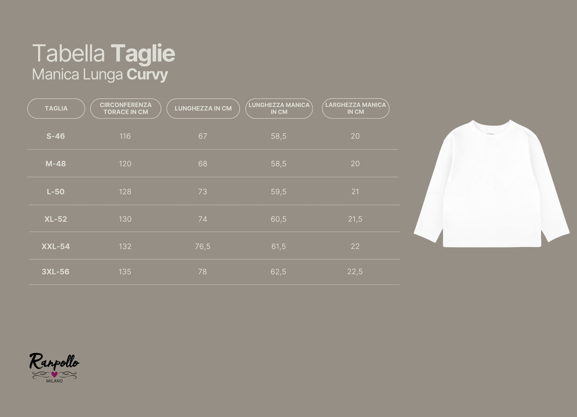 - Curvy: vestibilità comoda / morbida taglie dalla 50 alla 56