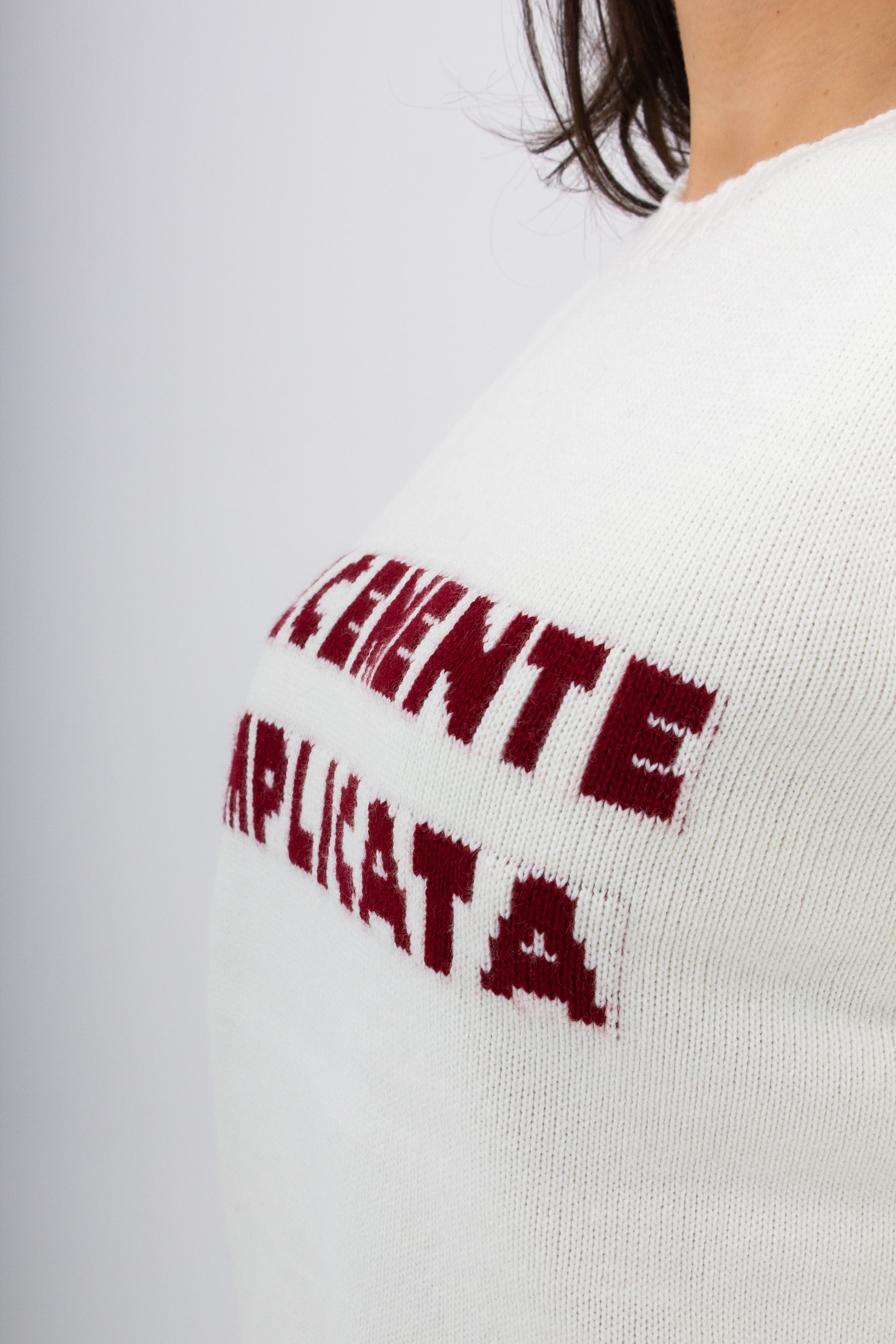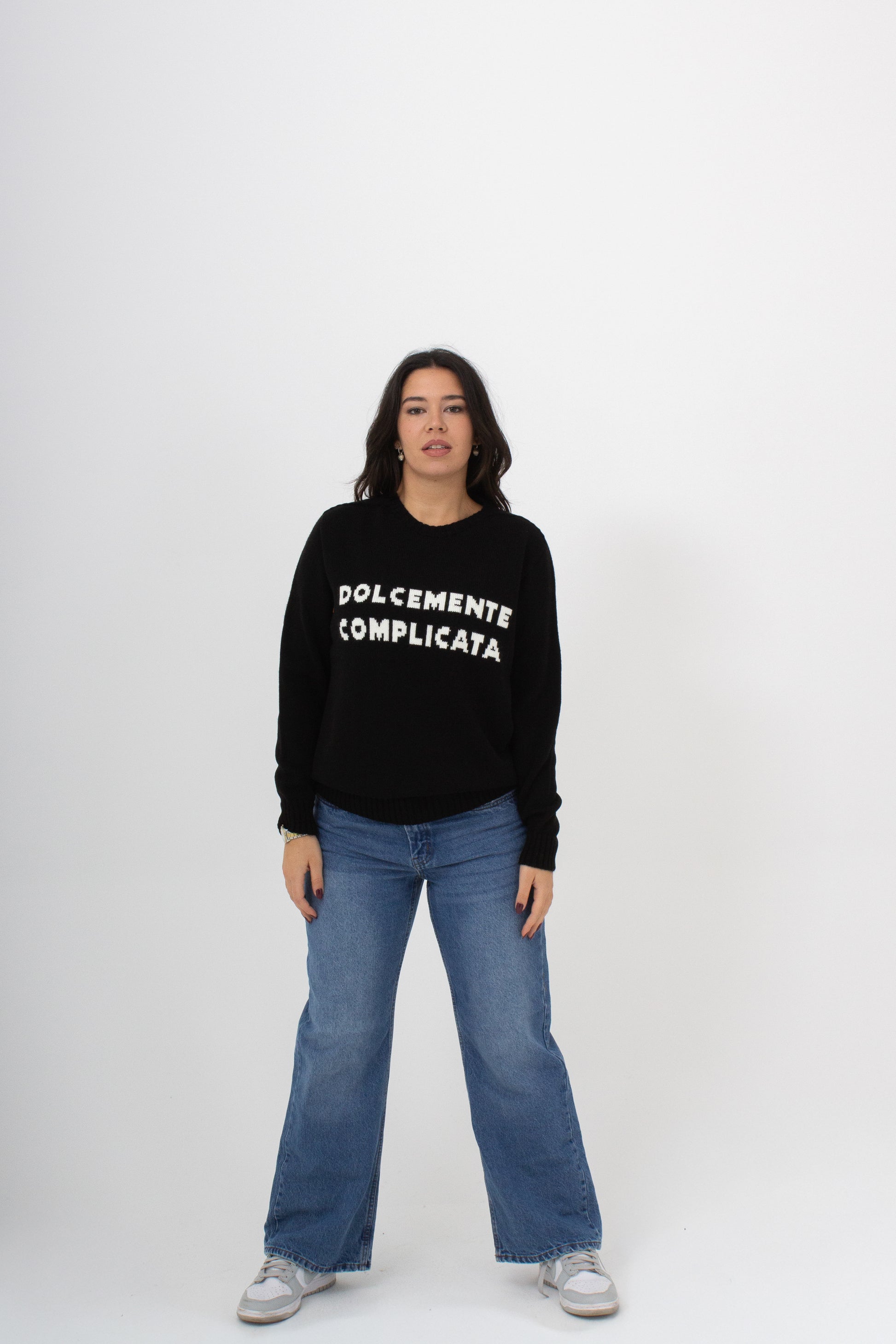 Maglieria made in italy 50% Lana 50% Acrilico , con scritta ad intarsio . Vestibilità comoda dalla XS ALLA 4XL.